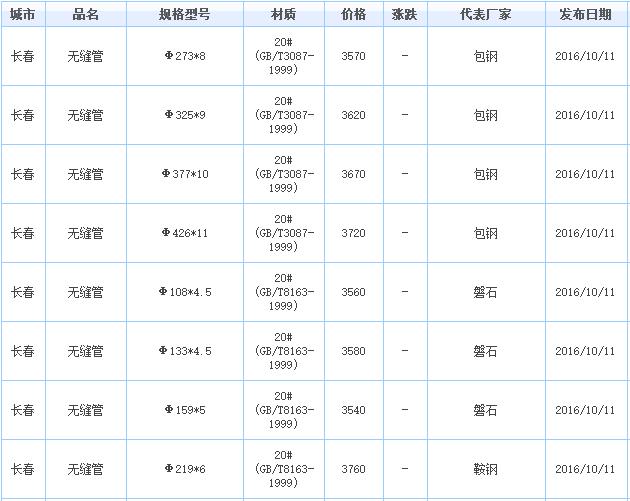 10月12日长春pe无缝钢管厂20#273*7等不同型号的精密光亮管出厂价格参考,长春的主要生产厂家是鞍钢、磐石、包钢等厂家,价格基本无差异。